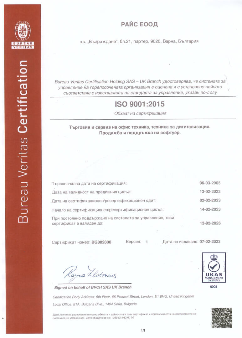 РАЙС ЕООД е българска търговска фирма с 29 годишен опит в продажбата и поддръжката на офис техника – копирни машини, принтери, скенери, и дигитализация на библиотеки и архиви. За годините на своята дейност компанията утвърди позициите си на пазара в България и изгради търговска и сервизна мрежа в регионалните центрове на страната: София, Пловдив, Варна, Бургас, Шумен. С изградените в школата на РАЙС ЕООД търговски и сервизни специалисти, фирмата може да отговори на клиентите си с успешната продажба на най-подходящите за тях решения на територията на цялата страна. Ние, от екипа на РАЙС ЕООД сме убедени, че най-точният показател за успех е доверието на клиентите. Стремежът, доказван ежедневно от всички работещи в РАЙС ЕООД е да се запази традицията на доброто обслужване, като максимално се отговори на изискванията на клиентите и навременно се предлагат най-новите продукти и услуги. Решенията, предлагани от нас, често са източник на конкурентно предимство за клиентите ни, правейки техния бизнес по-производителен, сигурен, устойчив и ефективен.